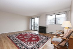 Bright and spacious 2 bdrm, 1 bath corner unit w/ new vinyl plank flooring, recently renovated and ready for you to make your new home.(We can even include the furniture!) Open floor plan w/ big, bright living room & dining open to kitchen. Updated kitchen w/ tile backsplash, b/i microwave, lots of counter space. Large pantry includes new freezer and lots of shelving. Enjoy your morning coffee on the patio w/ stunning mountain views. Storage is in no problem in the unit as well as 2 extra storage lockers, 1 outside your door. The building is very well run & great amenities room w/ pool table & big patios for entertaining. Secure u/g parking (1 spot), but who needs a car when you can walk to all great restaurants & shopping the area has to offer. Don't be shy...bring us an offer.
