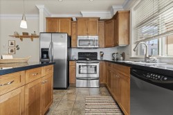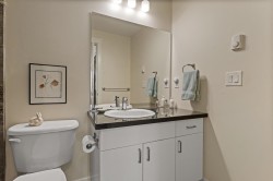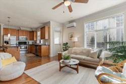 Welcome to The Hartford at Garrison Crossing! Bright and open CORNER 2 bedroom + den unit with a thoughtful layout and 9’ ceilings throughout. The SOUTHWEST-facing exposure fills the home with natural LIGHT. Beautiful Large patio ,Cozy gas fireplace, updated flooring, and a heat pump for efficient year-round comfort. Includes two parking stalls, a storage locker, plus in-suite storage room. Meticulously maintained and truly move-in ready.