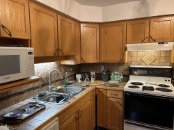Welcome to Rosewood Estates--known for its spacious condos and well-run strata with guest-suite to host your visitors. This one bedroom condo features an oak kitchen, dedicated laundry room, and balcony with a lovely Japanese maple tree offering color and privacy. The large living area has a natural gas fireplace for cozy winter evenings. Enter your primary bedroom and be surprised by the size, including double walk in closet and ensuite. Plus, the main bath has a 4 pieces. You'll appreciate that this building has a recently replaced roof and boiler, a healthy contingency fund, and hot water and heat included in your strata fee. Come enjoy peace and quiet at Rosewood Gardens and be within walking distance of the hospital, shopping, leisure center, The Coliseum, and public transit.