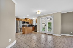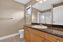 Welcome to the Maples! Corner unit with 3 bedrooms up and a basement which can be a 4th bedroom or a large family room. As you enter the tiled flooring throughout the main it opens up to a great room, living room that has a stone gas fireplace, kitchen, and eating area. Bright and open kitchen with maple cabinets, granite countertops, pantry, and a newer stove. Eating area with french doors that lead out to the nice sized patio and backyard. Laundry has 2023 newer washer/dryer and large double car garage. Upstairs has 3 generous sized bedrooms with the primary having a 3 pce ensuite and walk in closet. Downstairs is a huge rec room or 4th bedroom, lots of storage. Central air, fully fenced yard and visitor parking close by. Close to all levels of schools,shopping, and amenities nearby!
