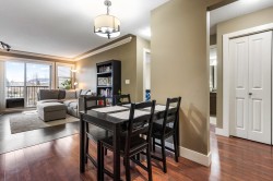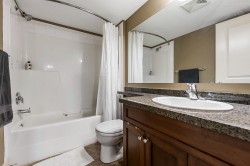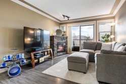 The best homes are the ones that fit your life; welcome to this 2 bed 2 bath West facing condo offering 968 sq ft of living space, mountain views, 9' ceilings, crown moulding, granite countertops, a/c/heat pump & cozy fireplace that anchors the main living area. The layout provides excellent separation between bedrooms making it ideal for everyday living. The central location puts you just minutes from shopping, dining, coffee & easy walkability to the vibrant District 1881 for boutique shops & restaurants. Pet friendly, 1 secured u/g parking spot & well run strata makes this the perfect home for a first-time buyer, investor or downsizer looking for comfort, convenience & long term value. Comfortable connected living in a location that simply makes sense making life feel easier.