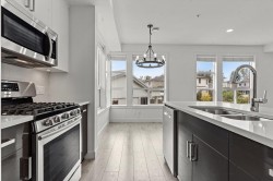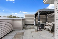 Midtown 2 STUNNER! This BRIGHT & SPACIOUS 3bd/3ba CORNER END UNIT townhouse has it all. OPEN CONCEPT main floor featuring quartz counters, gas range, SS appliances, custom wall accents, cozy FIREPLACE & convenient powder room on the main. BRAND NEW hot water on DEMAND! Upstairs you’ll find 3 bedrooms including a LUXURIOUS primary retreat w/ walk-in closet w/ built-ins, double-sink ensuite & BALCONY. Head up to your very own ROOFTOP PATIO boasting MOUNTAIN VIEWS—perfect for morning coffee or evening sunsets. With a side-by-side double garage, low strata fees, and being PET & RENTAL friendly (2 dogs/cats, NO size restriction) & A/C for comfortable summers, this home truly checks all the boxes. Meticulously cared for, move-in ready & located minutes away from schools, parks, shopping & HWY 1!