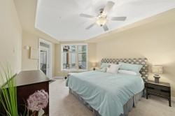 Englewood Courtyard – master-planned, gated 45+ community near Garrison Crossing & Rotary Trail. Spacious inside corner unit, one of the largest in the building! Features 2 bedrooms + den, 2 baths, laminate flooring, 9’ ceilings, quartz counters, maple shaker cabinets with roll-outs, pantry, under-cabinet lighting, and upgraded appliances. Includes 1 parking stall & 2 storage lockers. Large walk-in closet, A/C, gas fireplace, and gas BBQ hookup on the sunny patio. Enjoy the clubhouse, guest suites, RV parking—a pet & people-friendly community! Call today to view.