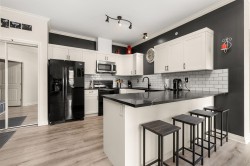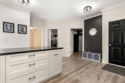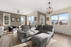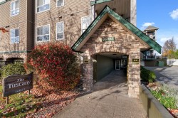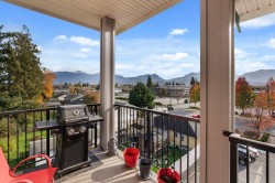 2 BED 2 BATH TOP FLOOR CORNER unit with PANORAMIC MOUNTAIN VIEWS at The Tuscany. One of Central Chilliwack’s most desirable condo buildings. This bright and spacious corner unit offers 1,145 sq. ft. of beautifully maintained living space featuring 9-foot CEILINGS, crown moulding, and custom millwork throughout. The kitchen is complete with quartz countertops, a pantry, and plenty of cabinet space, opening seamlessly into the dining and living areas filled with natural light. Bathrooms include a 3-piece ensuite in the primary and a 4-piece main bath. A large laundry/storage room adds functionality, while thoughtful custom touches make this home truly stand out. Step out onto your SOUTHEAST-facing balcony and take in panoramic MOUNTAIN VIEWS. Great home for anyone wanting great views!