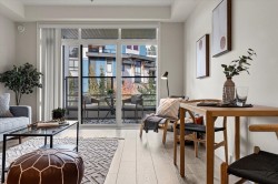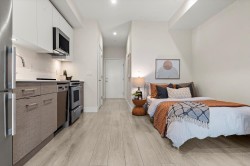 Welcome to Garrison Central — the heart of convenience and comfort! Ideally located near shopping, dining, the Vedder River, and beautiful Cultus Lake, this is the perfect place to call home. This bright bachelor/studio suite features contemporary finishes, including stainless steel appliances, quartz countertops, in-suite laundry, and a full 4-piece bathroom. The smart open layout offers space for a dining table as well as a couch and queen-sized bed, while the generous covered patio expands your living area outdoors. Additional perks include a storage locker and secure underground parking. With two pets allowed and no size restrictions, this home is a fantastic choice for both investors and homeowners alike.