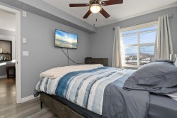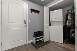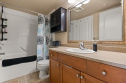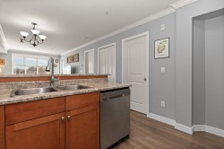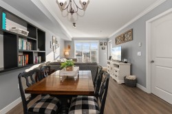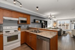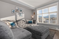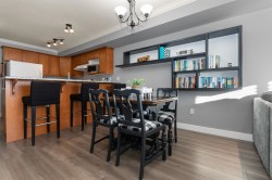 LOCATION, LOCATION! This well-maintained one-bedroom upper unit is ideally situated with shopping, restaurants, and public transit just steps from your door. Located in a welcoming 55+ community, the building offers a variety of amenities including a recreation room with scheduled activities, an exercise room, guest suite, and library. The open-concept kitchen features an eat-up bar and flows nicely into the bright living space. A sunny south-facing exposure fills the home with natural light and provides lovely mountain views from both the living area and patio. A generous storage room adds extra flexibility and could easily be used as storage or a small home office.