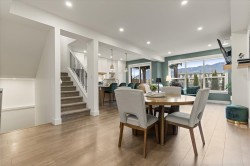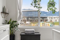 Welcome to Cedarbrook, one of Chilliwack’s newest developments. This well maintained duplex offers modern family living in a highly desirable community. The home features 4 bedrooms 3 bathrooms and a full basement with flexible space ideal for a media room, home gym or kids play area. High ceilings an open concept layout and large windows create a brighter open feel filled with natural light. The kitchen is finished with quartz counters and stainless steel appliances blending style with everyday function. Central air conditioning keeps the home comfortable year round. Outside enjoy a covered patio and fully fenced backyard backing onto a walking trail with mountain views. Just steps to parks trails and a popular playground and splash park this home offers the lifestyle your looking for.