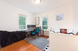 Development potential! This property sits on a large lot, zoned R5 & has rear alley access. Neighbouring property could be purchased at the same time and combined for possible building development (verify with city). Steps from District 1881, schools, transit, shopping, and dining. A prime location offering long-term growth potential! This bright and elegant 2 bed 1 bath home features 9' ceilings, hardwood floors, a rec room, updated kitchen and bath, plus a detached single-car garage. Perfect for immediate move in, rental or future redevelopment.
