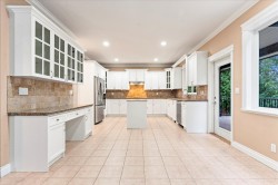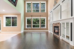 Executive family home with LEGAL suite on a private, fenced lot backing protected greenspace! This approx. 3,800 sq ft home features soaring vaulted ceilings in the great room, hardwood floors, crown mouldings, and an open-concept kitchen with granite counters, gas cooktop, and walk-in pantry. Enjoy an oversized patio overlooking the massive treed backyard with shed. Upstairs offers 3 large bedrooms plus flex space, including a primary retreat with walk-in closet and ensuite with soaker tub. The fully finished 2 bed/2 bath suite includes heated tile flooring, custom granite kitchen with SS pro series appliances, under-cabinet lighting, eating bar, pantry pull-outs, and a cozy gas fireplace. Hot water on demand and ample parking!