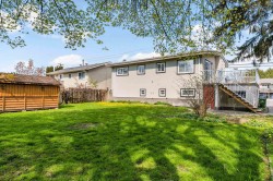 GORGEOUS 0.16 acre lot in this CENTRAL location is a true GEM! This is the IDEAL FAMILY HOME w/RENTAL SUITE AND backing the PARK! The upper level features BEAUTIFUL laminate flooring, fresh paint, 2" faux wood blinds, a RENOVATED main bathroom w/2 bedrooms & a SPACIOUS kitchen w/FULL appliances - not to mention, BROAD windows facilitating AMPLE daylight throughout the main floor. A cozy dining room opens up to a MASSIVE NEW upper patio w/UPDATED decking & access to the HUGE yard w/storage shed! FULLY FINISHED bsmt w/l OR 2 bedroom suite highlighted by a pleasing 3 pc washroom w/NEW shower & LARGE living room w/wooden beams. Some other notable features are the single car garage, torch on roof & vinyl windows. With 70' frontage, there is possibility of a subdivision with city permission!!