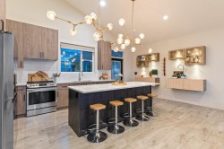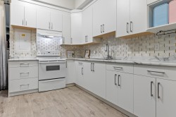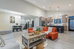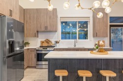 GORGEOUS MODERN basement-entry home featuring 3 bedrooms up PLUS a 1-bedroom DAYLIGHT suite with den! Enjoy a FABULOUS OPEN living space highlighted by a sleek modern kitchen with large island, SS appliances, chic lighting, gas fireplace, vaulted ceilings, and a MASSIVE window + front patio showcasing BREATHTAKING MOUNTAIN & VALLEY VIEWS! The primary suite offers another huge view window, TONS of natural light, a generous W.I.C., and a 4pc ensuite with dual sinks! Downstairs includes a bright 1 bed suite with separate entry and laundry! Additional perks: 20x20 covered vinyl deck, PRIVATE low-maintenance fenced yard, ULTRA-deep garage (perfect for trucks), and side RV parking! This STUNNING home checks every box — view it today and fall in love!