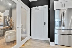 Welcome to refined living in this professionally designed 2-bed, 2-bath + den sub-penthouse, perfect for your next chapter. Thoughtful touches include crystal chandeliers, 11-ft ceilings, a warm, elegant colour palette, and an upgraded kitchen with custom pantry. Enjoy a walk-in closet that feels like a dressing room, a serene primary bedroom, power blinds on all windows, heat pump/AC, & stunning mountain views. With a secure EV charger dedicated to your parking spot, a vibrant community room and rooftop terrace with gas fire pits & BBQ, this move-in-ready home offers connection, comfort and ease in the heart of Sardis. Bike room, scooter charging, pet area, guest suite... Did we mention the stunning views and that we are on the quiet side of the building? Call your REALTOR today.