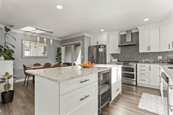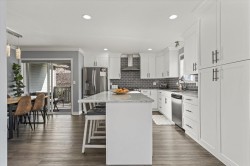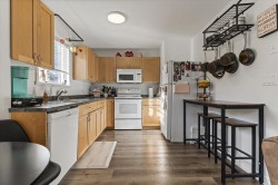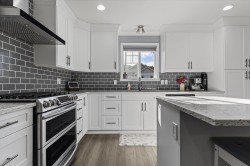 Lovely detached home with ground-level 2 bdrm suite in a quiet, family-friendly neighbourhood. This well cared for home offers thoughtful updates over the years including a newer roof. Upstairs features open concept living, w/ a cozy N/G fireplace and custom mantle, 3 bdrms & 2 full baths. Enjoy the high-end kitchen w/ updated cabinets, large eat-up island, Quartz countertops, SS appliances with a N/G stove, renovated bathrooms, and central A/C. Desirable corner lot with South & East exposure and a functional, wrap around yard—great for families! Fully self contained 2 bdrm suite, w/ separate entry and warm N/G fireplace, great for in-laws or mortgage helper. Exceptional storage w/ 5ft crawl space. Excellent location close to schools, daycare, amenities & outdoor recreation.