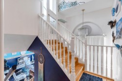 ROOF TOP PATIO DECK! Step inside this 5 level West Coast nautical vibe home. The main floor offers a bright galley-style kitchen w/ granite countertops, a new dishwasher, newer LG stove, opening to an outside Lrge deck. Cozy living rm w/gas f/p & dining rm both w/ soaring ceilings! Up a level and you have a family Rm w/ another deck. Up another level r the 2 bdrms BOTH w/ ensuites & Master w/ walk-in closet. New toilets in 3 of the 4 bthrms, custom stairs, newer washer & dryer in bsmt, new garage door opener, & A/C with a 10-year warranty. The brand-new rooftop deck is a true highlight, perfect for entertaining or unwinding under the stars. Double side-by-side garage, extra driveway parking, close to shops/mall & restaurants, this home is the perfect blend of style comfort & convenience