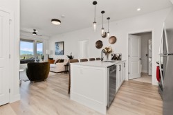 Experience luxurious living in this stunning 1 year old top-floor corner penthouse condo in "The Yearling" at the Ironhorse development. This 2-bedroom, 2-bathroom home boasts high ceilings and an expansive private covered deck with breathtaking mountain views. Modern amenities include stainless steel appliances, stylish tile and laminate flooring, quartz countertops, and an open, airy layout. Enjoy the convenience of 1 underground parking stall and a spacious storage locker. Located in the desirable Sardis area, close to shopping, schools, and parks for kids. Don't miss this incredible opportunity to own a beautiful, move-in-ready penthouse. 2 pets allowed. Dogs or Cats. No Size Restriction.