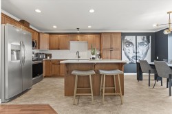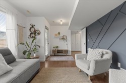 Welcome to Avion Place! Lovely 3-storey END UNIT townhouse in a centrally located, quiet 10-unit complex. Thoughtfully updated with a UNIQUE LAYOUT that truly works well for a variety of life styles. Bright, open kitchen and living space with the primary bedroom is conveniently located on the main floor. Two additional upstairs bedrooms and a flex space, ideal for a home office, work out spot or play / reading nook. The lower level features a generous sized family / rec room that opens directly to the backyard—ideal for relaxing or entertaining with a custom, wood detail feature wall. With WARMTH, PERSONALITY, STYLE and thoughtful design, this is a home that feels welcoming and refreshingly different from the typical townhome!