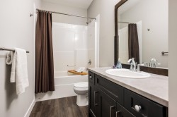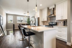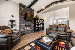 This stunning Basement Entry home offers 4 bedrooms and 3 bathrooms, including a spacious 1-bedroom suite. The main floor features an inviting open-concept layout with modern finishes throughout, including quartz countertops in the kitchen, vaulted ceilings with exposed beams, and a cozy fireplace in the living room. The primary suite is generously sized and includes a walk-in closet with built-in organizers, along with an ensuite featuring double sinks. The fully finished basement boasts a bright & roomy 1-bedroom suite, perfect for extended family or as a mortgage helper. Outside, you’ll find a fully fenced backyard complete with a covered patio! Ideally located in Promontory, you’ll be just minutes from the highway, grocery stores, restaurants, scenic hiking trails and more!