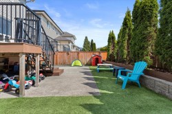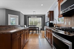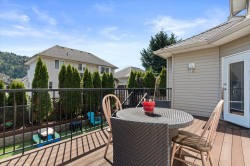 Welcome to this well-maintained 5-bed, 4-bath Sardis home—perfect for families! Just 2 blocks from the Vedder River and minutes from top schools, parks, shopping, and Cultus Lake. The open-concept main floor features a modern kitchen with updated stainless steel appliances, a large eating bar, hardwood floors, a cozy gas fireplace, and a den/office. Step outside to a fully fenced, manicured yard with an expanded patio and stunning southern mountain views. Upstairs offers 3 spacious bedrooms, including a master with ensuite and soaker tub; one bedroom can be converted back into 2. The finished basement includes a 2 bedroom suite with separate access and laundry. Located in a quiet bareland strata!