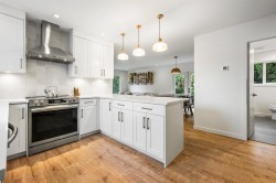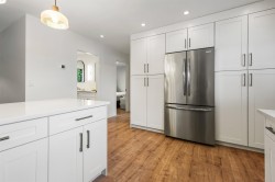 Where modern updates meet timeless charm — this split-level shines inside and out! Beautifully renovated w/ newer HWT (-1 yr), roof (3 yrs), & furnace (2 yrs), this home is move-in ready & bursting with style! Step into a BRIGHT living room featuring a MASSIVE picture window that floods the open-concept main floor w/ natural light. The modern kitchen boasts SS appliances, soft-close shaker cabinets, tiled backsplash, eating bar, & TONS of storage. Upstairs offers 2 spacious bedrooms & a stunning 5 pc bathroom w/ quartz counters, dual sinks, & a glass shower. Downstairs you'll find a large family room, 2 additional bedrooms, 3 pc bath, & an immaculate laundry room w/ ample storage. Enjoy a PRIVATE backyard surrounded by mature hedges — a rare find! This one’s a TRUE GEM — don’t miss it!