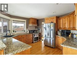Welcome to this fantastic Coldstream 5 bedroom 3 bathroom family home on Middleton Mountain with awesome Kal lake views! Plenty of parking with space for large RV on the right hand side. Nice sized backyard off the main living area. Has both a rear patio and a big covered front deck off the kitchen area to enjoy the Kalamalka Lake views and Okanagan weather. High quality build with features like the curved stair case and in-floor heat on the upper floor. Main floor has 3 bedrooms with includes a larger master with full ensuite. Kitchen has granite counters, updated appliances, and solid wood cabinetry. Downstairs has 2 more bedrooms and family room. Lots of storage and large laundry room. Upgrades in recent years include the furnace, AC, gas stove, fridge, dishwasher, gutter leaf guards, paint and more. Roof has also been replaced once. Grass has irrigation in the front and back yards. Amazing location close to parks, trails and all amenities. Come see everything this home has to offer! (id:27)