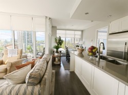 Super well maintained, Bright and spacious 2 bed, 2 bath corner unit at The Crown by Beedie. Floor-to-ceiling windows fill the space with natural light and offer incredible panoramic views. Thoughtful layout with bedrooms on opposite sides for added privacy. The kitchen features quartz counters, stainless steel appliances, and a gas cooktop— great for everyday living or hosting. Large covered balcony for year-round enjoyment. Well-kept and move-in ready. Building amenities include a gym, lounge, and more. Unbeatable location just steps to SkyTrain, shops, restaurants, and minutes to SFU and Lougheed Centre. Includes parking and storage.