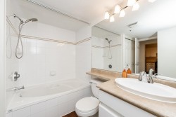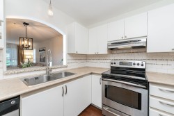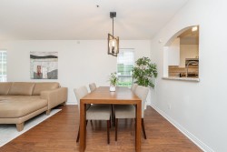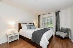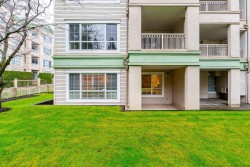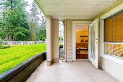 Garden-level 1 bedroom CORNER END unit overlooking the tranquil Hoy Creek GREENBELT. BRIGHT and PRIVATE, this home offers a peaceful retreat in the heart of Coquitlam City Centre. Features include a cheater ensuite with soaker tub, gas fireplace (included in maintenance fee), private patio, storage locker, and 2 parking stalls. Updated with stainless steel kitchen appliances and a new full-size Maytag stacked washer/dryer. Pet-friendly building with nature trails at your doorstep. Steps to Evergreen SkyTrain, Douglas College, Lafarge Lake, Library, Glen Pine Pavilion, Evergreen Cultural Centre, and Coquitlam Centre. Call for your private showing.