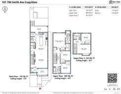 Experience the elegance of this high-quality, new-built 4 bed/3.5 bath, 1973 sq ft Side by Side Triplex Unit 101 This sunny, south-facing home offers 3 levels of well-designed luxury living on Smith Ave, Coquitlam. Main floor features hardwood, 9 ft ceilings, open living/dining, a high-end kitchen with quartz counters, pantry, and a large balcony. The second level offers a primary bedroom with luxe ensuite + 2 bedrooms and a full bath. The top level includes a family/office space + 1 bedroom plus full bath. Tasteful finishes: carpet, custom cabinetry, modern lighting, Fisher & Paykel appliances. Heating/AC heat pump + electric baseboard. Huge Crawl space storage. Two parking W/ EV Charger. Steps to SkyTrain. 2/5/10 Yrs Warranty Open House Sat January 31st 2–4 PM