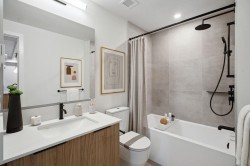 Welcome home to Dwell by Anthem. Located in a peaceful, family-oriented neighbourhood an 8 mins walk to the Burquitlam Skytrain, restaurants, shopping, parks, the new YMCA, and Mtn View Elementary School. Enjoy hosting gatherings with friends and family in your own club house and watch your children play in the playground. Step in from your very own front door! This spacious 733 sqft corner 1 Bed+ den garden flat home offers your dream kitchen with designer appliances and 3611 fridge, + full sized laundry. The open-concept layout flows seamlessly onto a private patio where you can garden, entertain/host with your pets, friends/family gas bib incl. Primary bedroom large enough to fit your king sized bed. Contact us to learn about current incentives. Open by appointment only.