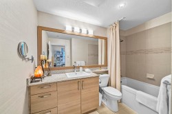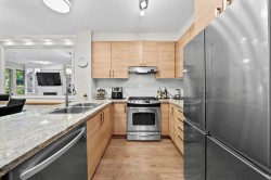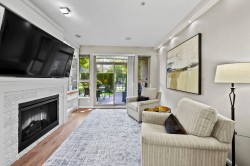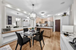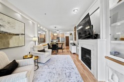 This STUNNING former "Show Home" is MOVE IN READY!! The "Thomas house" built by Polygon is a 2 bed/2 bath ground floor home featuring upgrades throughout: sophisticated built-ins, natural wood highlights, designer wallpaper, large framed mirrors, custom designed headboard featuring built-in side tables with lights, new flooring and more! BONUS: 9' ceiling, gas stove, storage locker, EV charging, LARGE patio w/ fenced yard - perfect for pets/kids! Residents also have access to the private Nakoma Clubhouse, which features over 18,000 sq. ft. of resort-style amenities: basketball/badminton court, outdoor pool, gym, guest suites, & yoga area.