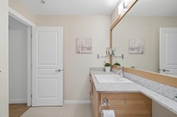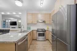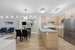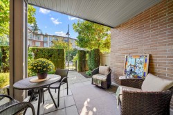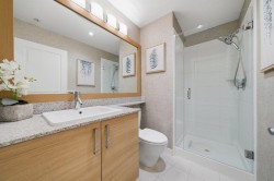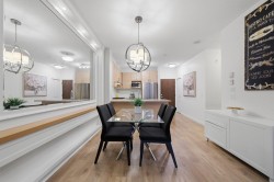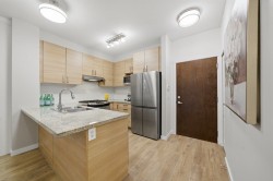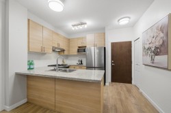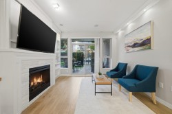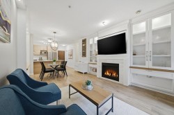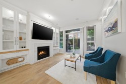 This STUNNING former "Show Home" is MOVE IN READY!! The "Thomas house" built by Polygon is a 2 bed/2 bath ground floor home featuring upgrades throughout: sophisticated built-ins, natural wood highlights, designer wallpaper, large framed mirrors, new flooring and more! BONUS: 9' ceiling, gas stove, storage locker, EV charging, LARGE patio w/ fenced yard - perfect for pets/kids! Residents also have access to the private Nakoma Clubhouse, which features over 18,000 sq. ft. of resort-style amenities: basketball/badminton court, outdoor pool, gym, guest suites, & yoga area. Located near trails, schools, parks, Skytrain, & more. Open House: Sunday, February 15th 2:00 - 4:00 pm.
