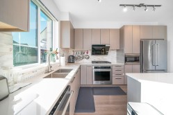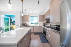 End Unit! Side by Side DOUBLE garage+2outdoor parking! South-North Facing! Stunning View! Well maintained Polygon 3 level town home for sale! Fenced front yard led to open concept mail floor features over height ceiling, bright living room surrounded with windows allows plenty of natural lights in, cozy dinning room connected to south facing balcony, Chef-favourite gourmet kitchen with custom-designed cabinetry, stainless high end appliances, large island and quartz countertops . Upper floor offers spacious master bedroom with luxury ensuite bathroom, and another two decent-sized south facing bedrooms with full bath. Basement has one bedroom perfect for family entertainment . Excellent location with waking distance to schools, shopping, parks, trails, public transits, restaurants & more.
