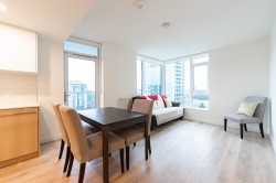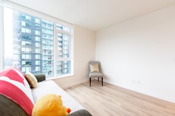 Welcome to SOCO1 North Tower by Anthem. This bright southeast-facing 2 bed, 2 bath corner home offers stunning views and a 168 sq. ft. covered balcony. Features include an L-shaped kitchen with quartz countertops, Bosch & Fisher Paykel appliances, and central A/C with heat pump. Prime location steps to Lougheed SkyTrain and Shopping Centre, within the vibrant SOCO master-planned community offering 43,000+ sq. ft. of premium amenities. Includes 1 parking and 1 storage. Easy to show. Open House Dec 20,21(Sat,Sun) 2–4 PM. Review Offers on DEC 22 5pm.