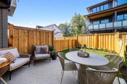 Welcome to VERSANT. A boutique collection of Modern Craftsman-inspired townhomes built by award-winning Infinity Properties. This 3-bed 2.5 bath home features a functional layout for growing families. Large kitchen with custom cabinetry, quartz countertops, SS app w/GAS range and entertaining island with eating bar. Deck off kitchen w/Gas BBQ outlet leads to a RAISED fully fenced BACKYARD. Laminate flooring on main floor, high efficiency gas furnace with AC and Rinnai water heater. Upper floor feat. 3 bedrooms incl. SPACIOUS primary bedroom w/spa inspired ensuite. Enjoy easy access to hiking trails, mountain biking routes + lakes. Only 10 minutes from the Skytrain, West Coast Express + Coquitlam City Centre Shopping + Amenities. Presentation Centre located at #162. Open Sat-Wed 12-5 PM.