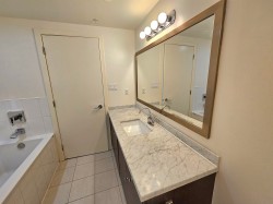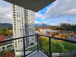 Claremont by Bosa at Coquitlam Centre! BEST VIEW OF THE BUILDING. Well maintained and newly painted NE corner unit open floor plan, 2 bedroom with a den - the spacious den can be a 3rd bedroom, along with 128 sqft of two balconies. Features are the bright living room with a fireplace, upgraded laminate floor throughout, kitchen with SS appliances & island with granite countertops, huge entrance hall, fully-equipped gym, SIDE BY SIDE 2 PARKING & 1 storage locker. Walking distance to Skytrain, West Coast Express, City Hall, Shopping Mall, Community Center, Lafarge Lake, Library, Douglas College, Glen Eagle and Pinetree Secondary Schools, restaurants & more. Ideally located for the convenience and comfort. Open House: 2-4 pm, Sun, Nov 2, 2025.