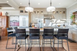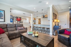 This stunning three-level custom-built home seamlessly blends luxury and functionality in a spacious, family-friendly design. Offering six bedrooms, soaring ceilings, and heat pump air conditioning, there's room to grow, entertain, and truly unwind—hot tub included. The open-concept main floor is anchored by a showstopping gourmet kitchen featuring stainless steel, commercial-grade appliances and an oversized breakfast island—perfect for everyday living. High-end finishes and thoughtful details shine throughout, from custom millwork to designer lighting. The lower level offers a full recreation space ideal for movie nights, games, or a home gym. Outside, enjoy your private, low maintenance beautifully manicured yard complete with an outdoor kitchen, built-in fire feature, and covered patio