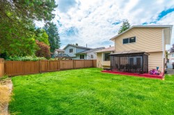 Amazing family home on a super private lot. Located on a quiet street and neighborhood. 4 bedroom split level home, lovingly maintained and lots of update: New renovated both bathrooms upstairs, New tiles in kitchen. New fridge and dishwasher. New blinds in most rooms, New engineered wood flooring on stairs and second floor in 2023, plus more. Lifetime metal roof in 2010. Garage converted to a 4th bedroom and den in 1993 with permit which is easily to be converted to a rental unit as a mortgage helper. Walking distance to Town center park, Shopping Malls, Plazas, Sky train and more. Nestor elementary is just next to the house. Enjoy the fully fenced southeast facing large flat rear yard. Ideal area for young family.