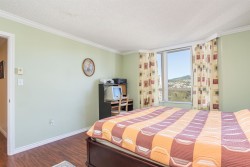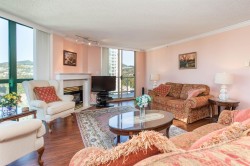 Welcome to this bright & spacious corner unit in the heart of Coquitlam! The open-concept layout features floor-to-ceiling windows filling the home with natural light, accented by elegant crown mouldings throughout. The updated kitchen offers white shaker cabinets, quartz countertops, stylish backsplash & stainless-steel appliances, with a convenient pass-through to the dining area. The large living room includes a gas fireplace & sliders to a northwest-facing balcony. The primary bedroom has a walk-in closet & 4-piece ensuite, while the second bedroom opens onto the balcony; a perfect spot to relax. Walk to Coquitlam Centre, Lafarge Lake, Douglas College & SkyTrain. Exceptional building with great amenities.