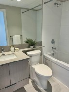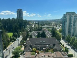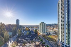 Enjoy stylish living in this bright southwest corner unit at Sophora at the Park by Polygon! This 2-year new 2 bed, 2 bath home features 861 SF inside plus 2 generous balconies totaling 376 SF. The sunny south-facing living space offers wide-open views, while the gourmet kitchen boasts Bosch appliances and a sleek central island. The primary bedroom includes double closets and a modern ensuite. The second bedroom sits privately on the opposite side with its own balcony. West-facing covered patio offers stunning city views. A/C and laminate flooring throughout. Exceptional amenities: gym, yoga studio, games/party room, rooftop garden and more. Walk to SkyTrain, Coquitlam Centre, restaurants, library, and top schools. 1 parking & 1 locker included.