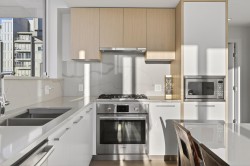 Welcome to 567 Clarke & Como tower built by master builder Marcon! This well-designed 2-bedroom, 2-bathroom corner home with a bright kitchen along the exterior wall, allowing natural light and fresh air through oversized windows above the sink. Enjoy direct access to one of two spacious sundecks, ideal for entertaining. This home offers sweeping 270-degree views to the east, south and west. Bedrooms are placed at opposite corners for privacy, each with ensuite access. The primary also features its own private deck. With over 200 sq ft of outdoor space, was among the first to sell out. Highlights include air conditioning and premium Fisher & Paykel appliances. Residents enjoy a full exercise center, relaxing sauna, and a beautifully appointed clubhouse for unwinding. MUST SEE!