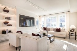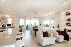 This bright 2, 078 sq. ft. 4 bed 3.5 bath corner townhome at Polygon's Partington Creek boasts an open layout with overheight ceilings, laminate wood flooring, and a spacious patio. The gourmet kitchen features custom cabinetry with extra wall pantry storage, sleek appliances, engineered stone countertops, and a central island where the whole family can gather. The master ensuite features a luxurious soaker tub as well as a spa shower with bench. Plus, enjoy the convenience of a powder room on the main floor, AC, a double-car garage with a level 2 EV outlet and exclusive access to the Creekside Club! Embrace the feeling of home on Burke Mountain. Visit our sales office and three display homes at 3674 Victoria Drive to learn more.