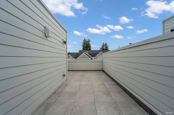 Discover this stunning SOUTH-FACING 2 bedroom, 2 FULL BATHROOM townhome featuring a 248sqft HUGE ROOFTOP TERRACE and a 100sqft PATIO. The open-concept layout is enhanced by numerous upgrades, including AIR CONDITIONING, laminate flooring throughout, custom closet organizers, and window bug screens. Just over 2 years, the building boasts an ideal location only a 5 minute drive from a 55,000sqft. YMCA and a 3 minute drive from a 24,000sqft. Safeway retail plaza. Plus, Burquitlam Station is just a 10 minute walk away, providing seamless transit access. This home comes with an EV PARKING STALL and a storage locker. For those with additional vehicles, STREET PARKING IS AVAILABLE. Don't miss out on this exceptional opportunity!