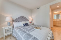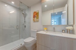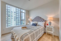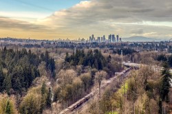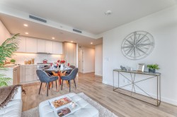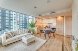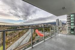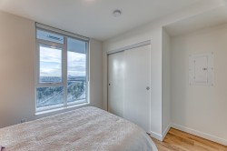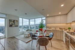 Beautiful 2 bed 2 bath 824SF NW CORNER home at SOCO by Anthem! Spacious L-Shaped Kitchen features integrated 30" Bosch and Fisher Paykel Appliances, Quartz Countertops. Bright living room with SWEEPING city and mountain view. Primary bedroom with walk-in closet and Ensuite. Good-sized 2nd bedroom and guest bathroom. Laminate flooring throughout, Air-conditioned. Spacious West facing balcony to enjoy beautiful Sunset. Comes with 1 EV ready parking and 1 locker. 43,000SF indoor and outdoor amenities includes Gym, Lounge, playground, Sports Court, BBQ area etc. Walking distance to Lougheed town centre, skytrain, H mart, restaurants and coffee shops and more. Like New and ready to move in!