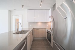 Core area in Coquitlam Center, steps away to Skytrain, shopping mall, college. Well built by Bosa. 22nd floor facing to west with good city and mountain view. The unit has very reasonable floor plan, two sized bedrooms and two full bathrooms, featured with high end appliances, gas stove. The building is taken care by a living in caretaker. Enjoy the gym, club house and other amenities. Low strata fee and well maintained. Serious seller. Need 24 hour notice for showing arrangement because it's tenanted.