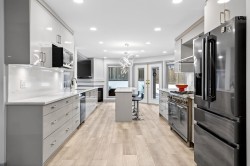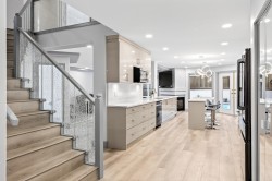 This beautifully updated custom built home blends luxury and functionality with a renovated main floor featuring high-end vinyl plank flooring, designer lighting, marble countertops, and a 48" Bertazzoni gas range with double oven. The open-concept layout flows seamlessly to spacious living areas, perfect for entertaining. Upstairs offers 5 generous bedrooms including a grand primary suite with fireplace and spa-inspired ensuite. The basement includes a steam room, office, and large rec area. Outside, relax by your walk out pool on your expansive sundeck. Updated Boiler system and 50 year stone tile roof. Bonus: huge tandem garage with 16' ceilings in a prime family location near top schools, parks, and amenities! Act Fast!