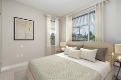 Welcome to Charland by Ledingham McAllister—a modern, well-built home in a prime location! This end unit offers 2 beds, a den, and 2 baths with 878 sq ft of functional living space. The open layout has a spacious kitchen w/pot lights, an island, quartz counters, shaker style cabinets, and S/S appliances. The living and dining flow seamlessly to a covered balcony. The primary is generous with a walk thru closet and ensuite. The 2nd bed has a cheater ensuite for added convenience. Den off the entry is ideal for a home office. Highlights include 9 ft ceilings, laminate flooring, brand new carpet, 2 parking, and storage locker. EV charging in visitor parking. Centrally located with access to highways and skytrain, walking distance to Blue Mountain Park, Austin Heights shops and restaurants.