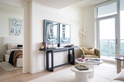 Welcome to SOCO by Anthem, a dynamic Master Planned community located in the heart of South Coquitlam. SOCO's South Tower rises 28 storeys and includes 43,000+ square feet of indoor and outdoor amenities. Minutes from the Lougheed SkyTrain station and major highway networks, SOCO is connected in every sense of the word. Our Northwest facing 2 bed home features a 125 sqft balcony with expansive views of Burnaby Mountain, downtown, Burnaby Lake and the lush landscape garden below. Our thoughtfully designed layout enhances every inch of space with airy 8'6" ceilings. The L-shape kitchen is equipped with integrated Bosch and Fisher Paykel appliances and adorned with luxurious quartz countertops. Convenient full size LG washer and dryer.