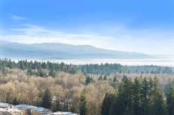 THE SKY HIGH VIEWS YOU HAVE BEEN WAITING FOR! Welcome to 3080 Lincoln Ave located in the heart of North Coquitlam. Designed to capture the UNOBSTRUCTED views of MOUNTAIN RANGES & ENDLESS FOREST, this 600 sq ft, 1 Bed, 1 Bath, suite hovers from the 26th floor, & comes w/ engineered hardwood floors, full size s/s appliances & laundry, 5 burner gas range, in-floor heating in kitchen & bathroom, 8'4 ceilings, 1 parking stall, & 1 locker. Enjoy the views from your 94 sq ft private balcony! Amenities include outdoor pool & hot tub, games room, lounge, yoga room, huge gym, sauna, media movie room, & guest suite. Only steps to Lincoln SkyTrain, Coquitlam Centre, parks, restaurants, & Lafarge Lake to name a few! MUST SEE VIRTUAL TOUR!