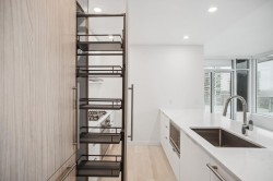 Welcome home to JINJU in West Coquitlam, developed and built by Anthem Properties. Located steps away from the Burquitlam SkyTrain station, JINJU offers unparalleled walkability to shopping amenities, restaurants, cafes, the new YMCA community centre, and Cottonwood Park. Step into your own mountain view hot tub and 28th floor spa with infrared sauna, charcoal cool room, and warm salt meditation room. This South West corner 2 bed home offers breathtaking city views and a private balcony to enjoy morning and night. Our layout enhances every inch of space with 9" ceilings, includes a heat pump for ultimate cooling and heating temperature control. The large kitchen counter seats 4 comfortably and is perfect for entertaining. Move in Ready.