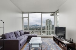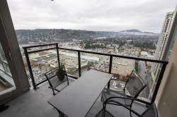 Welcome to The Levo, where you enjoy panoramic mountain and city views from your floor to ceiling windows in every room! This west facing 2 bedroom and 1 bath upper level home features an open concept layout, S/S appliances, granite countertops and a well sized patio where you can take in breathtaking sunsets in the evenings! Building amenities include a party room & a 30,000 Sq ft roof top garden featuring a walking path and waterfalls - a little private oasis for residents in the heart of Coquitlam Centre. Within minutes walk to Lafarge Lake, Lincoln Skytrain Station, West Coast Express, Douglas College, Coquitlam Aquatic Centre, Coquitlam Centre, The Library and countless cafes & restaurants. This home includes 1 parking and 1 storage locker. OPEN HOUSE - SUN Feb 8th 1-4pm