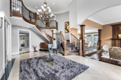 A Crown Jewel on the Street of Dreams. Introducing The Sovereign - a timeless architectural masterpiece by Perdale, and a celebrated Street of Dreams award winner. Elegantly reimagined with over $800K in bespoke upgrades, this estate rests on a 17,302 sqft level lot backing onto lush greenbelt. From its handcrafted stained-glass doors to soaring ceilings and rich millwork, every detail evokes refined luxury. The chef's kitchen is adorned with Sub-Zero & Wolf appliances, granite surfaces, butler's pantry, and wine fridge. Five lavish bedrooms, spa-inspired ensuite radiant heat, A/C, and media room complete this rare offering.